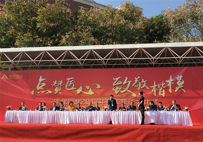 10月29日,2017年建業(yè)物業(yè)“點(diǎn)贊匠心、致敬楷?!奔寄艽蟊任浠顒?dòng)在鄭州城市花園外國(guó)語(yǔ)中學(xué)隆重舉行。本次活動(dòng)旨在提升員工專業(yè)技能水平,提高團(tuán)隊(duì)凝聚力,展現(xiàn)物業(yè)服務(wù)品質(zhì)提升成果?;顒?dòng)當(dāng)天,建業(yè)集團(tuán)董事長(zhǎng)胡葆森先生、建業(yè)新生活副總裁張立華先生、建業(yè)新生活副總裁蔡斌先生、建業(yè)新生活副總裁周建慧女士、鄭州市物業(yè)管理協(xié)會(huì)秘書長(zhǎng)田秀生先生、建業(yè)物業(yè)總經(jīng)理許靜女士蒞臨本次大比武現(xiàn)場(chǎng)。