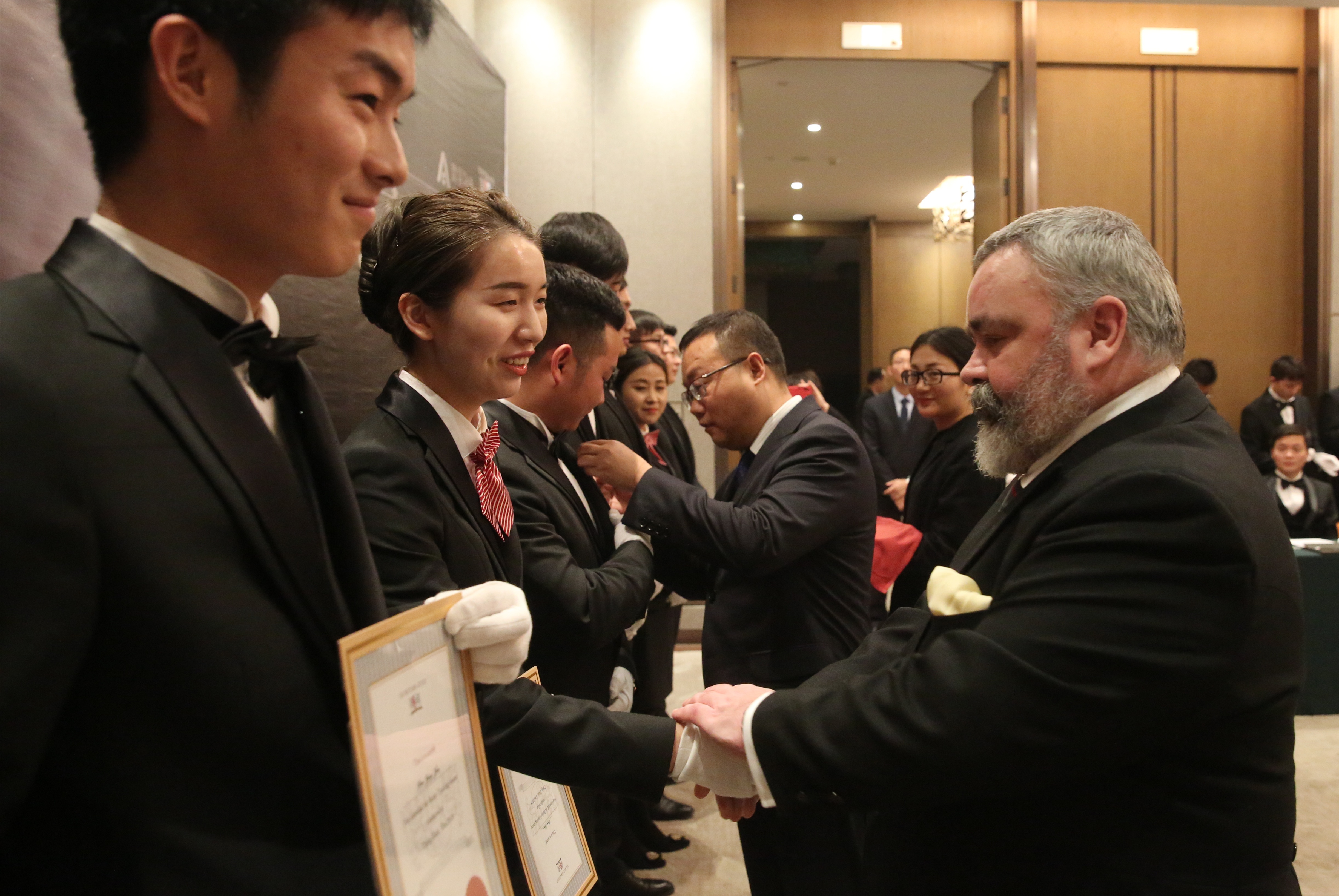結(jié)業(yè)典禮上,建業(yè)物業(yè)負(fù)責(zé)人張禮輝致辭并為學(xué)員們授徽,英國(guó)管家協(xié)會(huì)大中華區(qū)的安東尼老師則為學(xué)員們頒發(fā)了由英國(guó)管家協(xié)會(huì)認(rèn)證的國(guó)際管家證書(shū)。