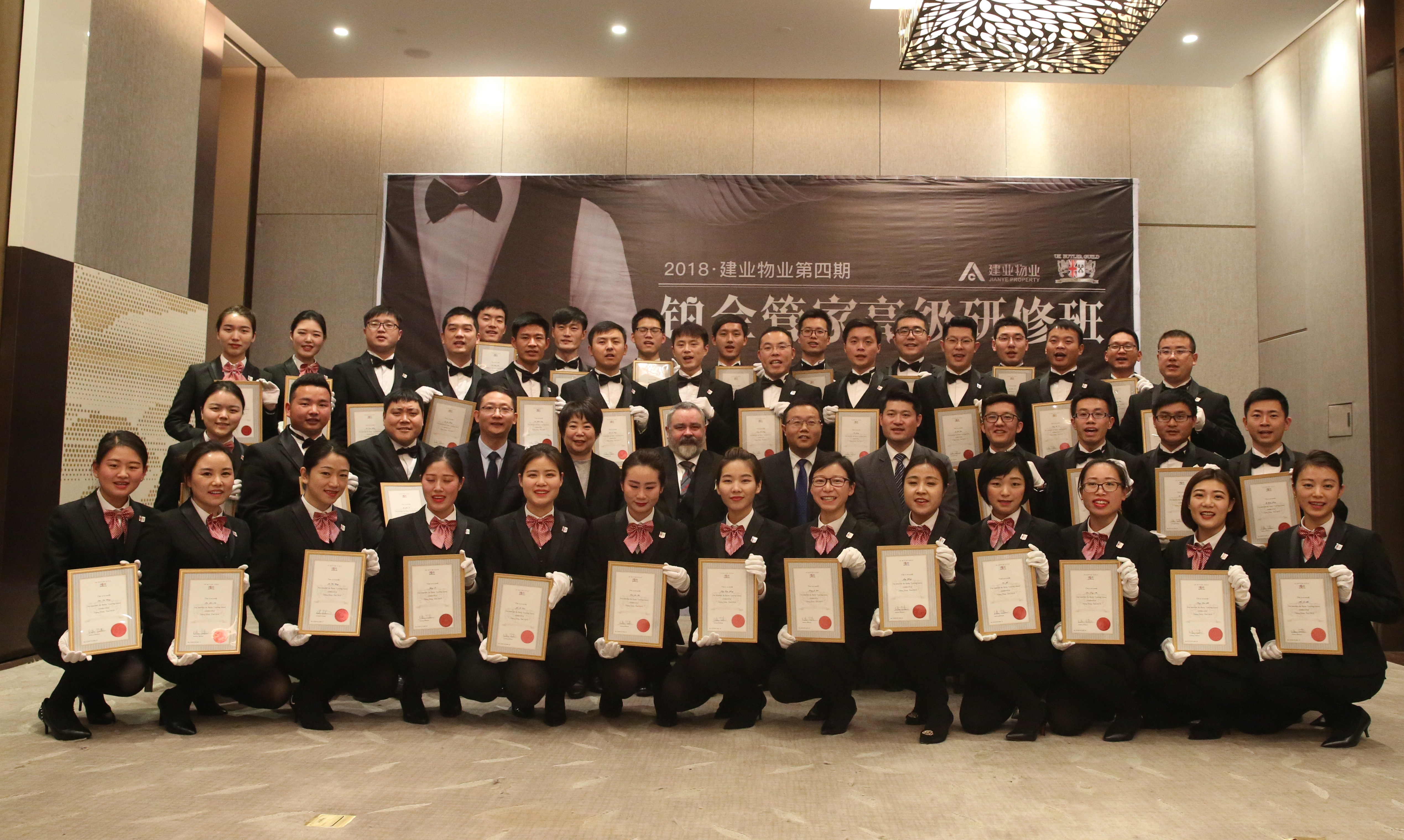 為提高服務(wù)品質(zhì),樹(shù)立行業(yè)標(biāo)桿,建業(yè)物業(yè)第四期鉑金管家研修班于128~19日在上街雅樂(lè)軒及開(kāi)封鉑爾曼酒店成功舉辦。從全省十八個(gè)地市層層甄選而出的40名管家參加了此次培訓(xùn),并在順利通過(guò)考試后取得了由英國(guó)管家協(xié)會(huì)頒發(fā)國(guó)際鉑金管家證書(shū)和徽章。