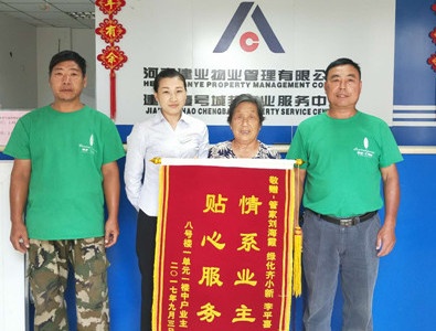 八月,雖已立秋,暑熱猶存,建業(yè)物業(yè)全體員工頂著炎炎烈日,堅守在園區(qū)一線,持續(xù)為業(yè)主打造舒適的人居環(huán)境,并積極主動的為業(yè)主提供幫助,此間涌現(xiàn)了一件件感人至深的好人好事。8月,我們收到拾金不昧、技術(shù)高超、服務(wù)熱情、智勇擒賊、助人為樂等多種類型的好人好事88例,其中錦旗34例,感謝信14例,電話表揚40例。 鏡頭一: 我是在宜陽·建業(yè)森林半島小區(qū)鋪地板磚的工人,給業(yè)主裝修期間不慎將手機丟失,正在我四處尋找無果,準備放棄時,建業(yè)物業(yè)禮兵隊長張國偉、禮兵常俊紅、孫慧三位同志幫我找到了手機。雖然手機不算太昂貴,但我親朋好友的聯(lián)系電話和微信等重要信息都在里面,能找到真的省去我太多的麻煩。通過此事,我對物業(yè)禮兵拾金不昧的精神肅然起敬,走在小區(qū)有一種回到家中,遇到親